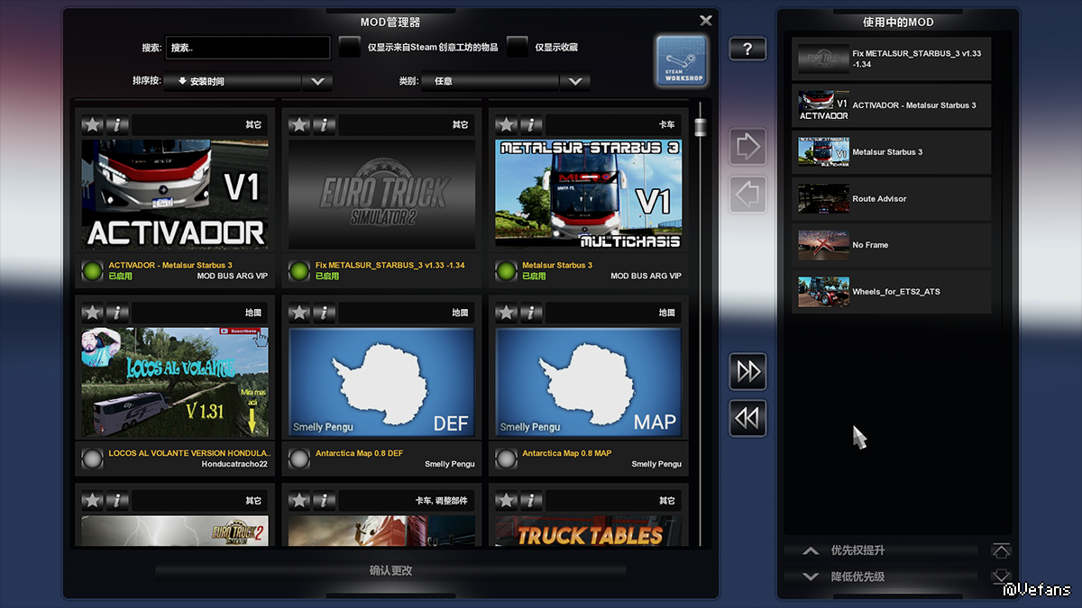 不要和其它客车或者卡车模组同用把那jeep及BMW丢垃圾桶去!优先级高到低依次是:Fix METALSUR_STARBUS_3 v1.33 -1.34 ACTIVADOR_STARBUS3_MODBUSARGVIP METALSUR_STARBUS_3_Multichasis_MODBUSARGVIP 模组是1.28的老模组只是更新DEF让其在1.34上出售个人建议新档玩.........告辞!