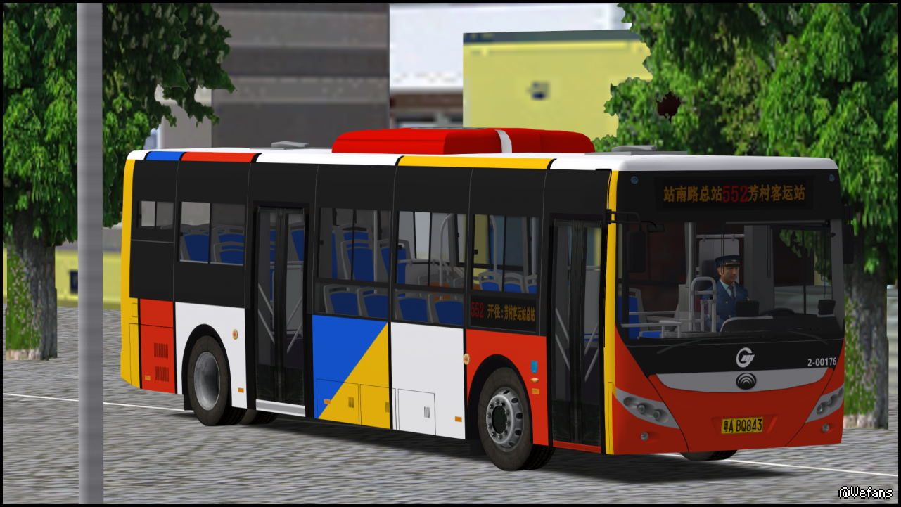 【介绍】游戏中虽然并非广州同型号车型,但也可以当做同款来玩.本次制作的是两个公司、两款涂装、两版后窗贴纸、三个logo的版本.
