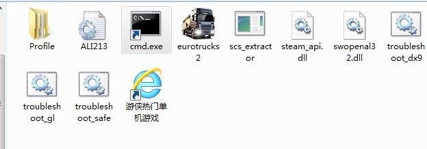 將cmd.exe複製到遊戲目錄下,並且遊戲目錄裏面要有scs_extractor這個文件,再運行遊戲目錄裏面的cmd試試