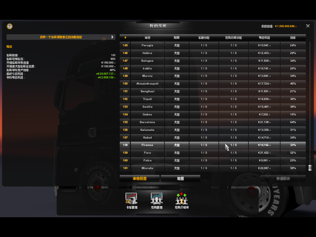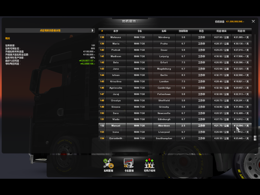 69个车库,应有345名司机,我正致力于将115辆车增加到345辆,115名司机增加到345名,141版本能雇满345人吗?有人雇满了吗?