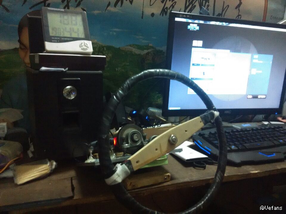 相比一代这次用的是光电鼠标 ,机械传动。一代的机械鼠标各种反映迟钝......这次的叫好一点,唯一的遗憾是游戏的转向速度要调整到很低 导致游戏方向跟不上{不影响行车,表现在猛打}后期将制作挂挡拨片以及刹车油门{游戏三号模式}...下面上图{拍的不好