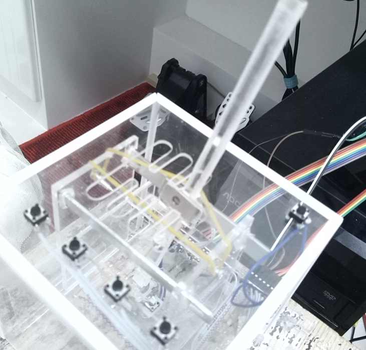 回中系統采用了一個手柄模擬搖桿的回中系統,回中力有點小,加了一個皮筋,感覺還不錯