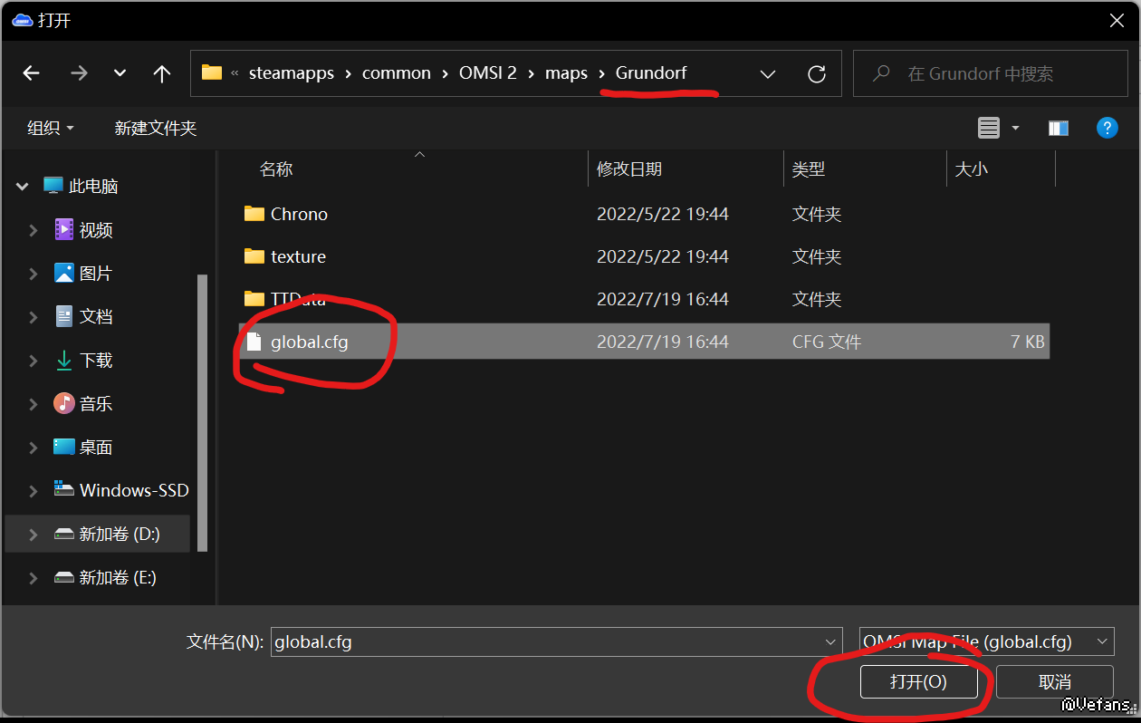 2.找到OMSI 2\maps\你想查的地图名,单击global.cfg,然后点下面的打开
