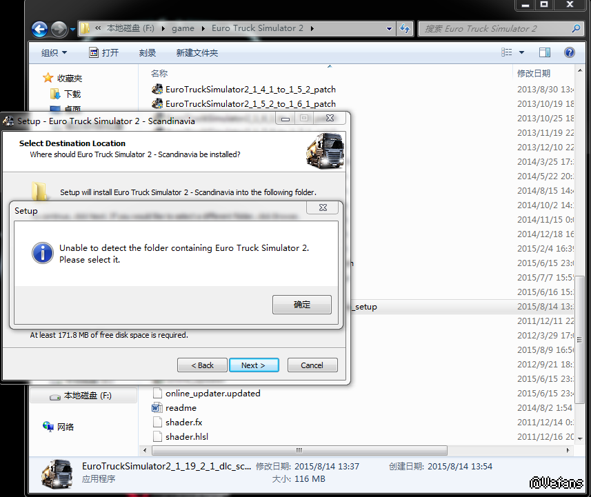 安装欧洲卡车模拟2 的北欧及东方DLC时提示所在目录检测不到游戏本体,是怎么回事