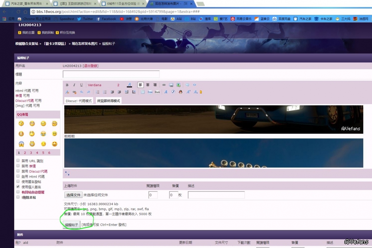 需要选择完图片之后发帖,最后编辑时点插入才行
