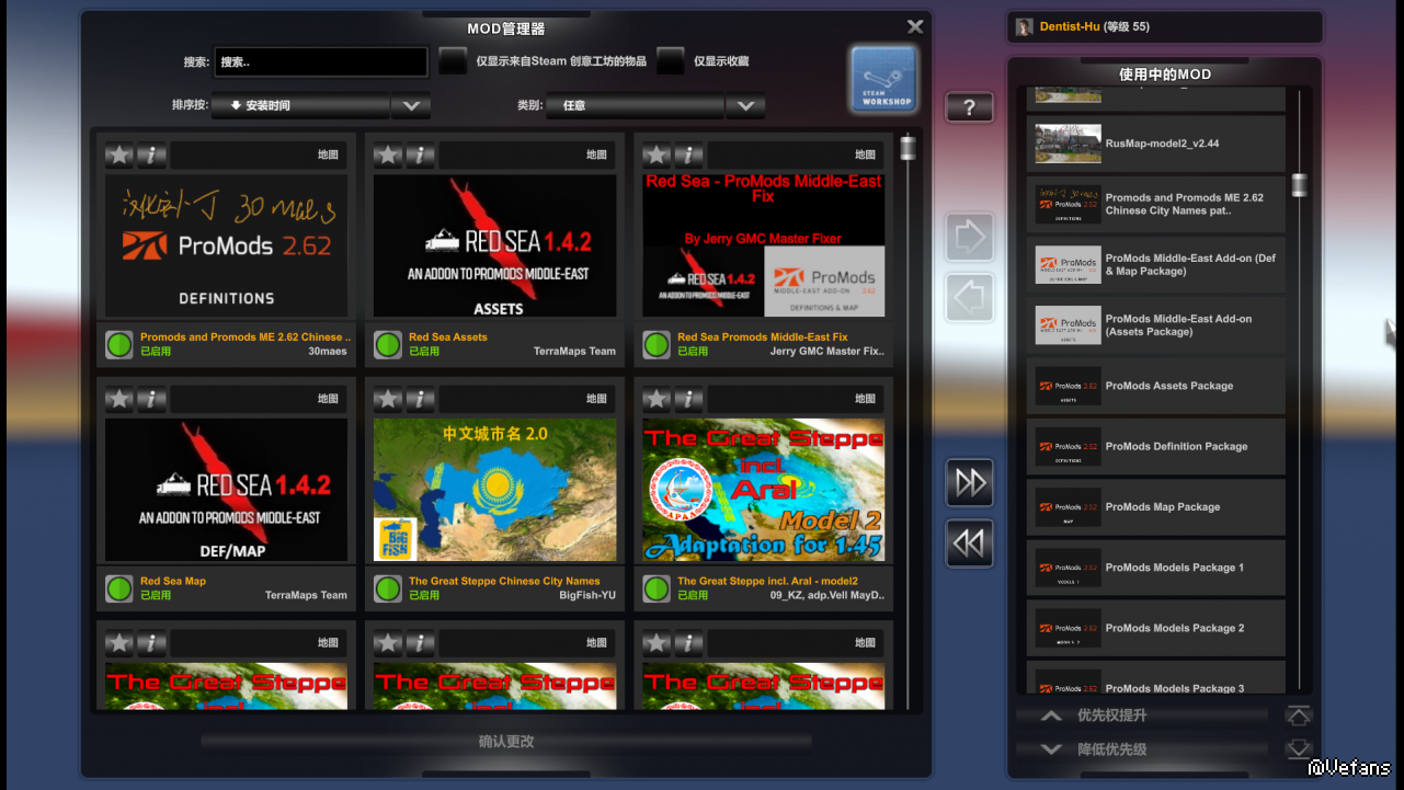 在装了promod 2.62加中东2.62以后,地图扩展是有,但是中东地区没有城市名显示。