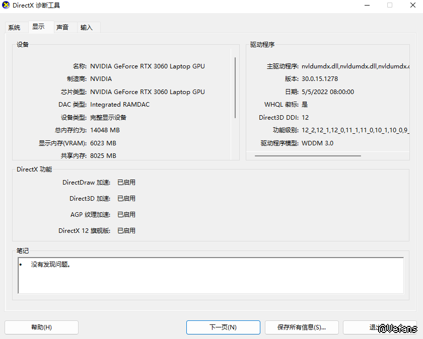 显卡:NVIDIA GeForce RTX 3060 Laptop GPU 6GB