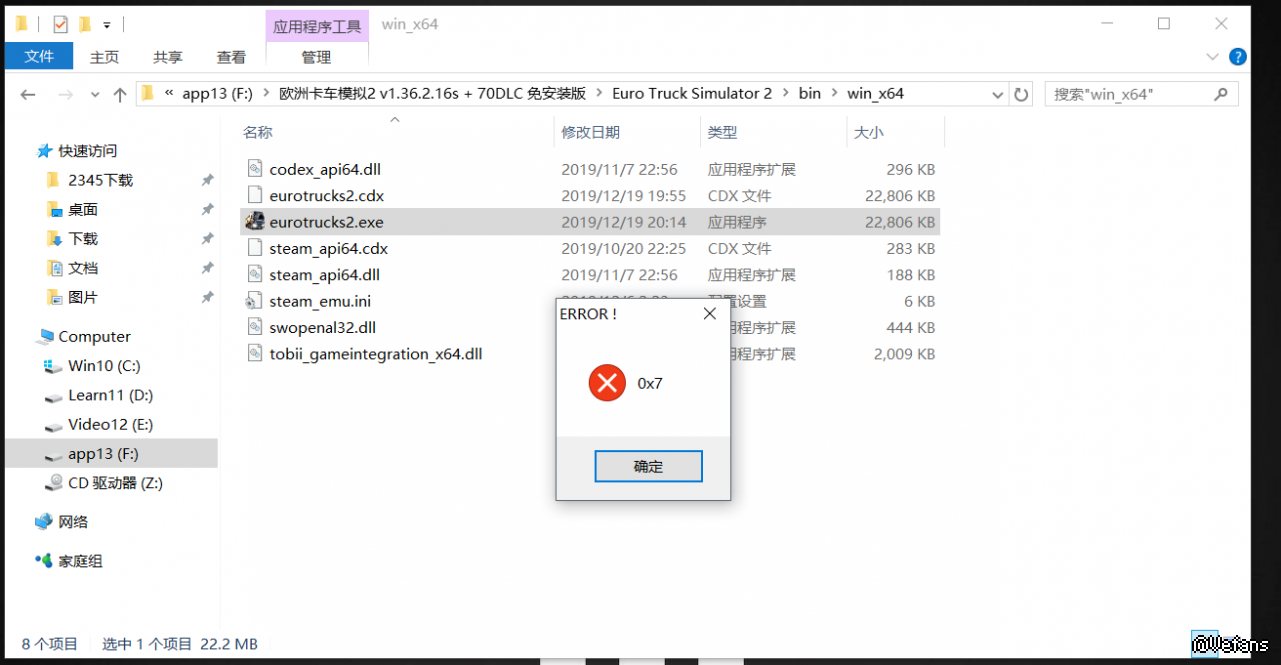 楼主好,您的游戏路径有中文,是不行的,要重命名