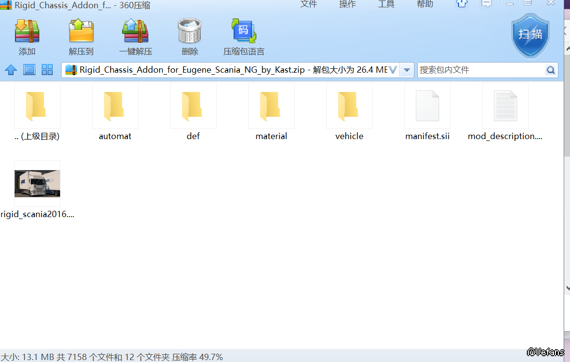 下载了一个串联卡车的文件,解压后这么多文件我应该选哪一个?放在哪个文件夹?