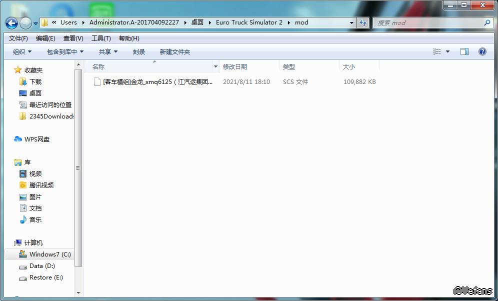 把MOD放到这个地方D:\文档\Euro Truck Simulator 2\mod(先安装有些才有此路径)