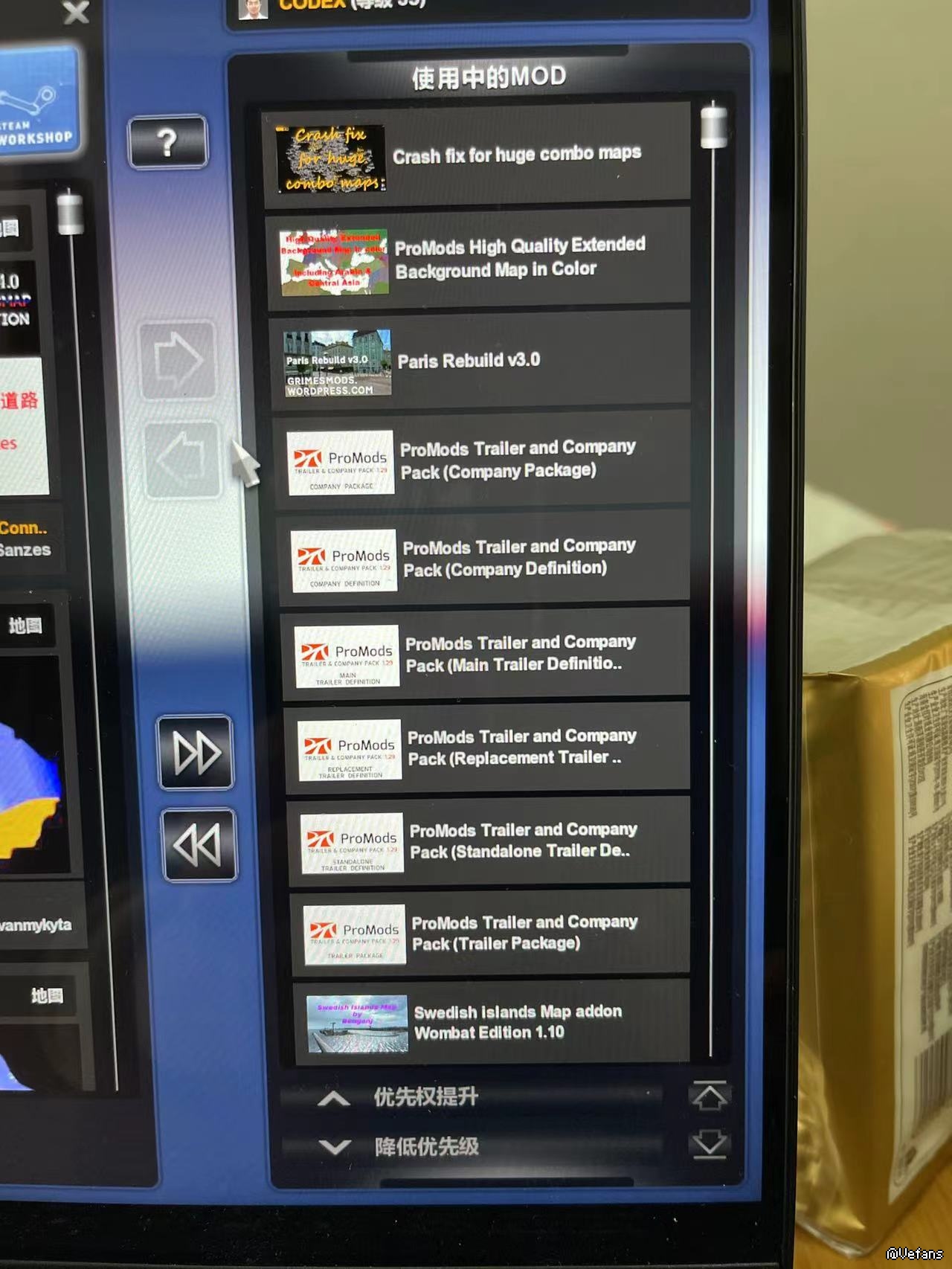 按照论坛上的高手们给出的大地图的MOD排序进行游戏,目前的问题是,经常在读取存档的时候,一直提示导航信息更新,要等待很长的时间才能进入游戏,因此把我的MOD顺序发出来,让高手们帮我看看到底存在问题,多谢。