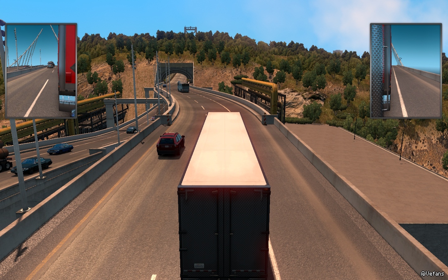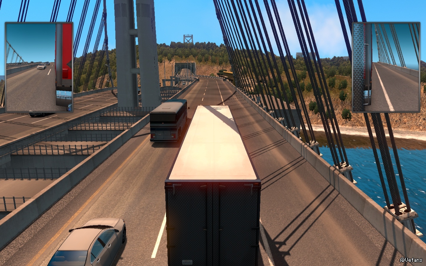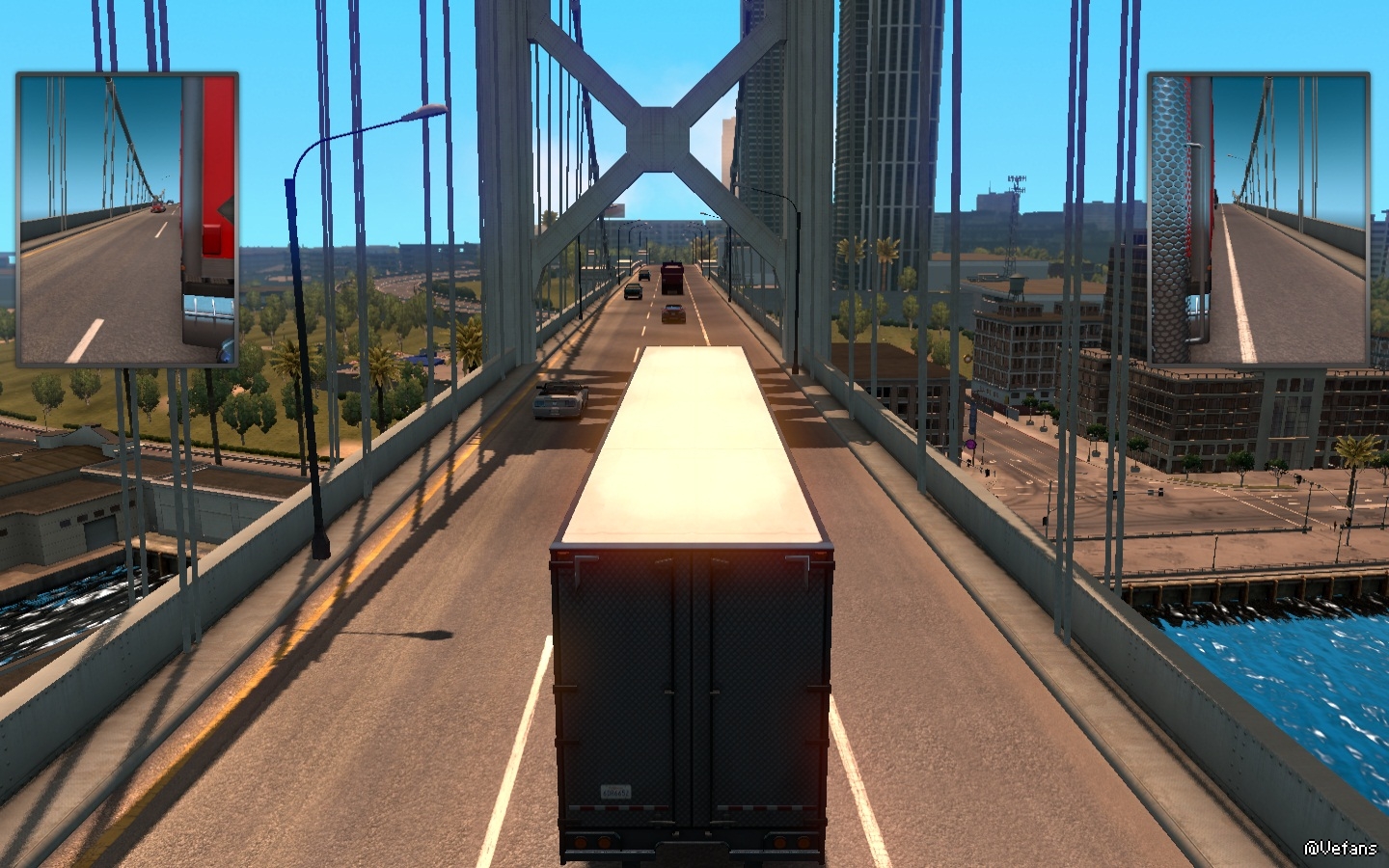 奧克蘭海灣大橋有兩層樓式各單向五車道,金門大橋則是雙向六車道
