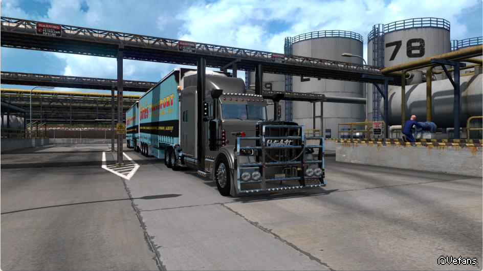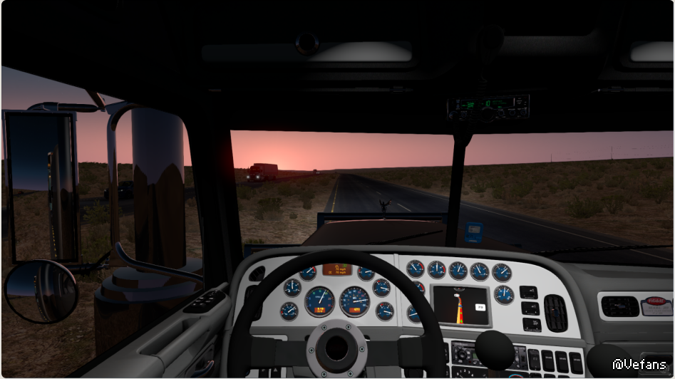 我到今天才算是真正体会到一个公司同一题材的两款游戏。肯定是我在玩的手法上出了问题。欧洲车重心高,视野好。轴距短,不稳当,但是车子很灵巧。美国卡车轴距长,自重大,高速行驶特别平稳。但是视野差。就是因为这个特点 ,我碰了美卡习惯了之后就不敢碰欧卡了。欧卡2的车子拐弯原来晃的这么厉害。我以前真没觉得欧卡2车很晃。美卡和欧卡玩法有区别。刚开始的时候开美国大鼻子不敢拐弯。美式长头车的视野盲区好大,尤其在城里的时候 各种看不见的盲区死角。 驾驶方式跟欧卡也不一样。双节挂车单行道拐弯必须占用对象车道 不然是怎么也转不了弯的。但是美国的地图适合跑多节挂车。只要出了城,都是大直路。这种路况不玩公路列车真的浪费资源了。话说美国大鼻子我就喜欢这彼得比尔特389。这车相当耐看。打心底喜欢这款大鼻子。