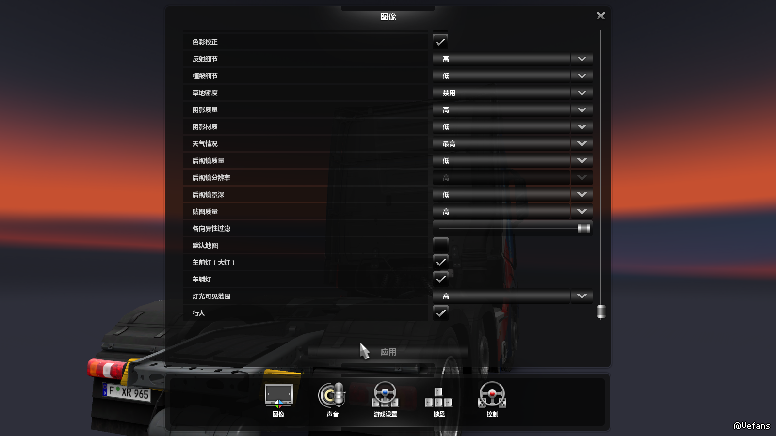 杂物间找到一台2010年的1月份的电脑,渣配:AMD Athlon x2双核处理器,2G内存(随着年代久远可用内存只剩1.7G),ATI Radeon HD4350(显存512MB),于是装了欧卡2测试效果,达到不错的效果以后Fps白天可以稳定在50-52之间,但是弱点在灯光和AI,白天只要AI不多超流畅,特别是早晨和傍晚,夜间只要不开大灯或者没有路灯Fps更是突破65,雨天会降到40,卡顿还能接受,但是如果晚上旁边有路灯而且堵车的话,Fps只有15-19,太卡了。总体来说此等配置潜力无穷