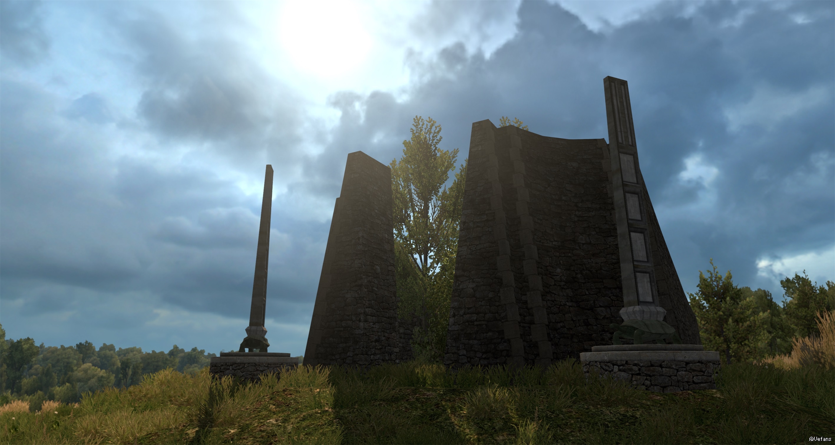 是在法国的公路边上,像是一个乌龟顶着一个碑?不知道现实中有这样的建筑吗?