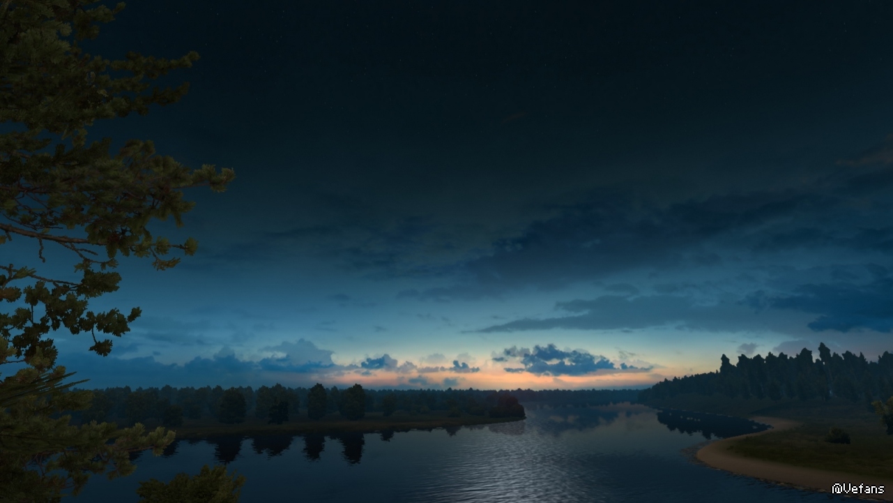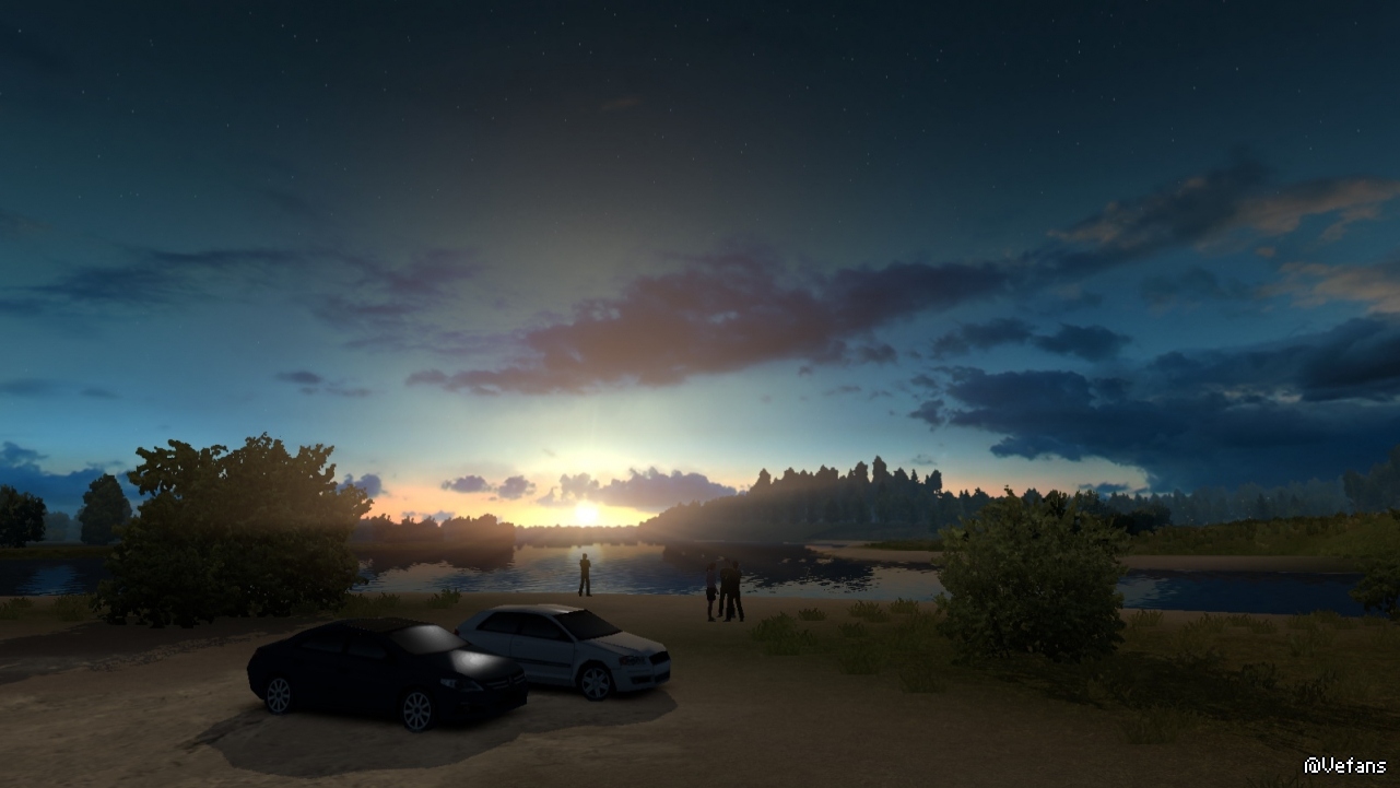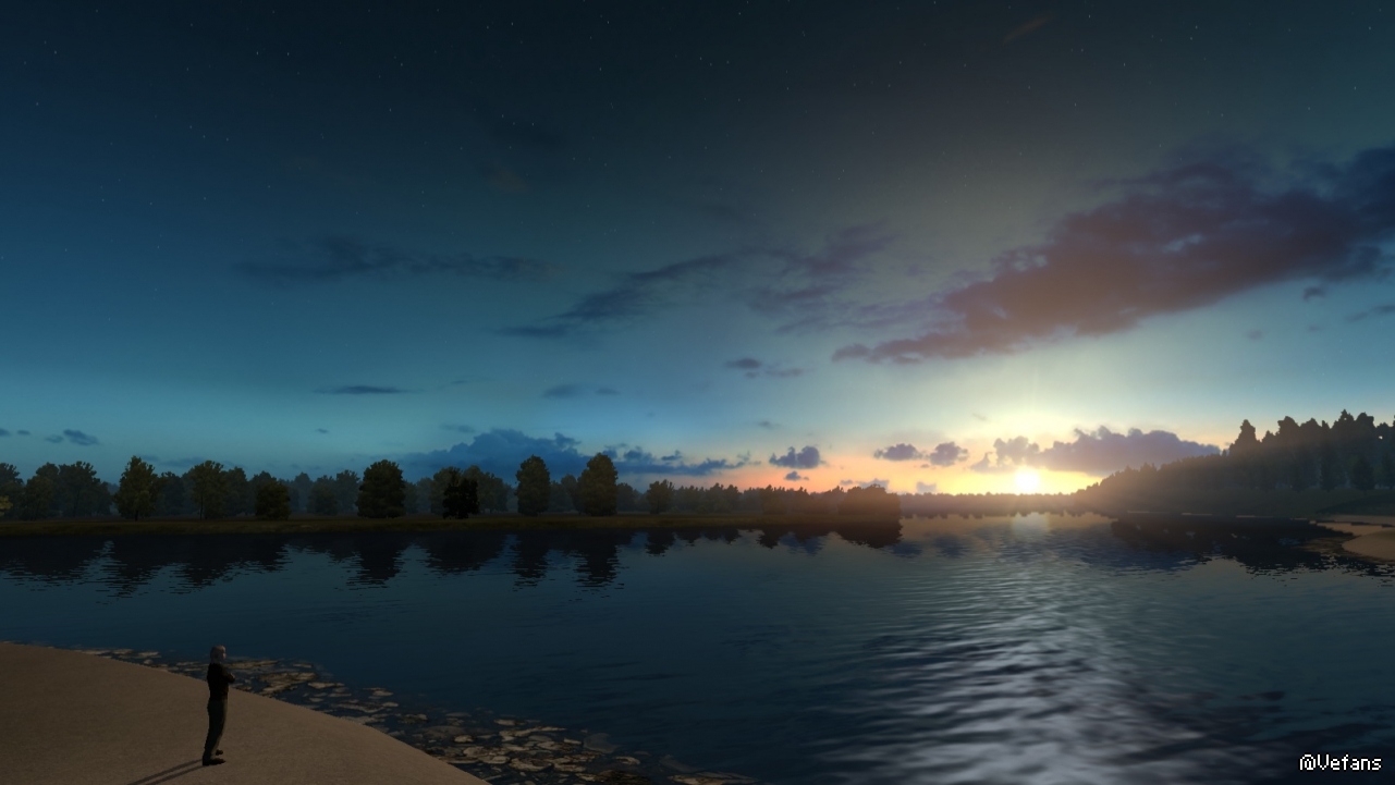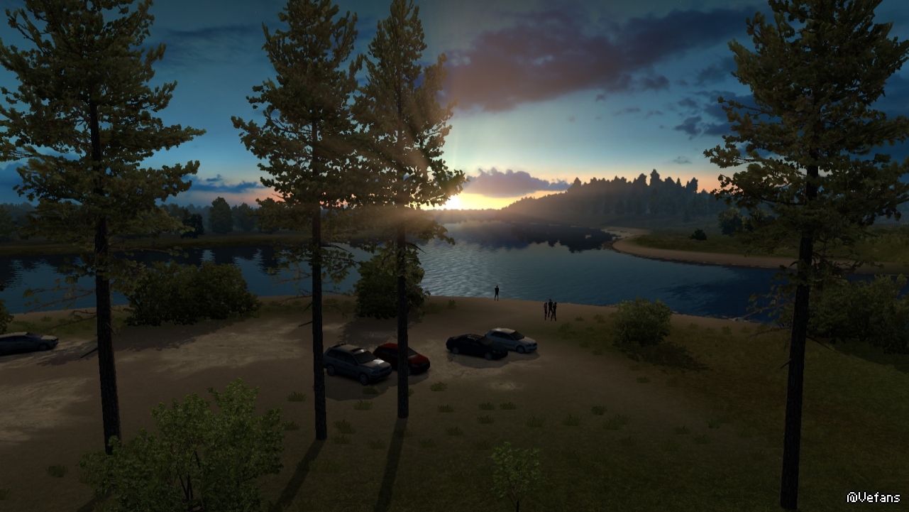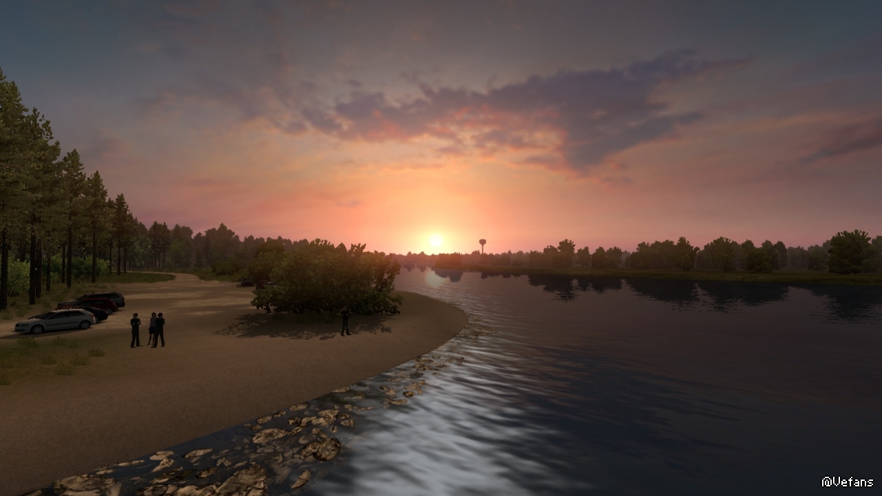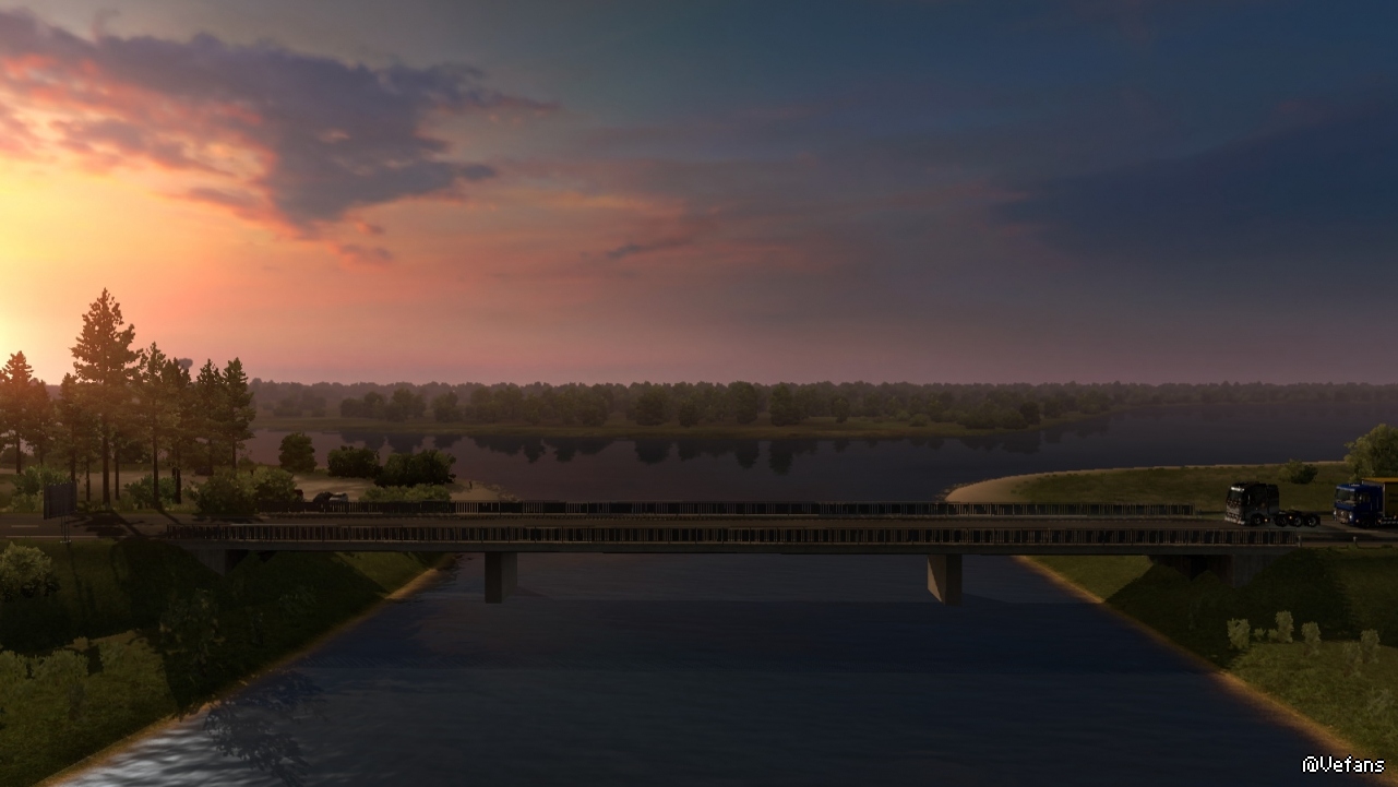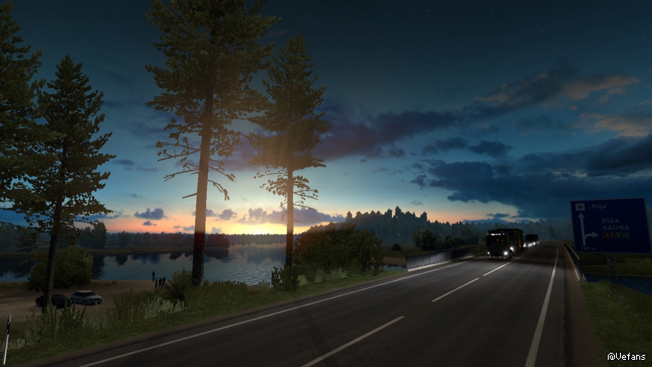 以下这些图来自 ProMods 某路段截图,详细位置没记录(个人比较偏好早晨和黄昏色调)。
