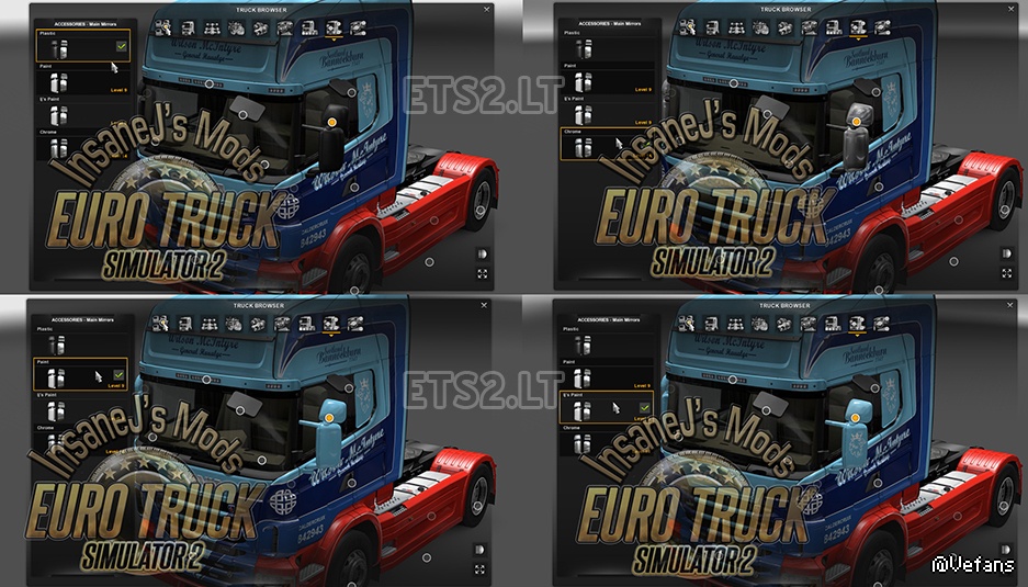 我也把后视镜和后视镜。后视镜现在允许使用SCS镜(塑料/铬/油漆)以及增加一个新的第四个选项允许全剥皮。
