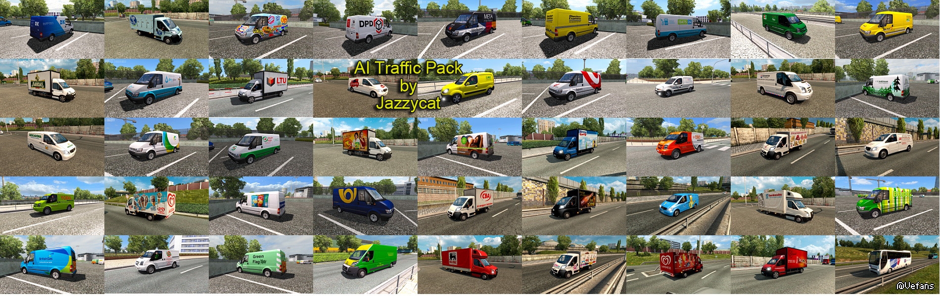 Included real 3D logos for default cars and about 400 skins for different vans and Opalin bus.