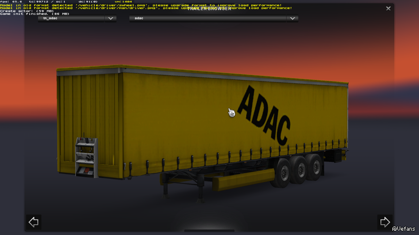 拖车包包括31种拖车,拖车全部都是独立的,并且出现在AI交通。兼容所有的地图(包括东欧+北欧DLC)