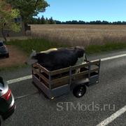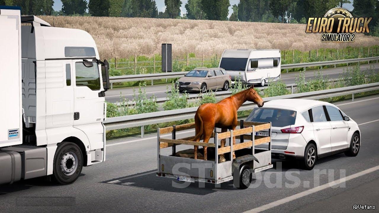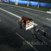 【介绍】:Автономный автомобильный прицеп в трафик с анимированным скотом (коровы и лошади)