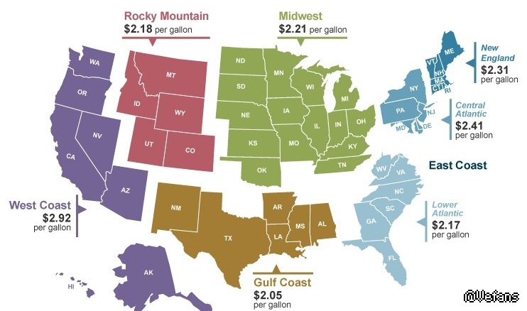 更新柴油价格海岸到海岸地图