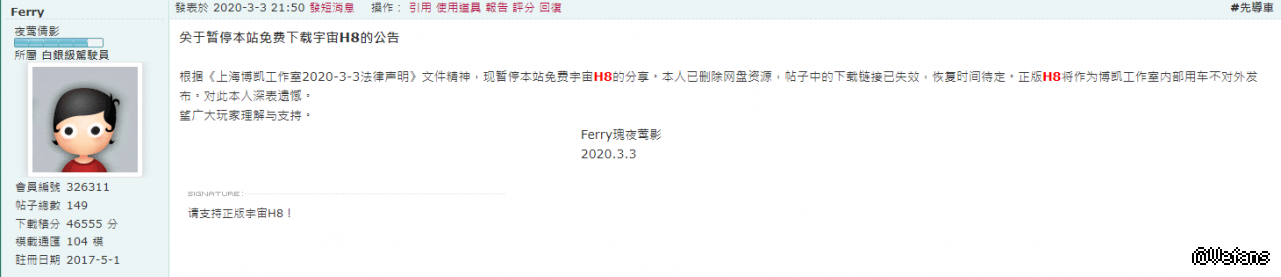 看着楼主的注册日期 再看看H8下架的帖子日期