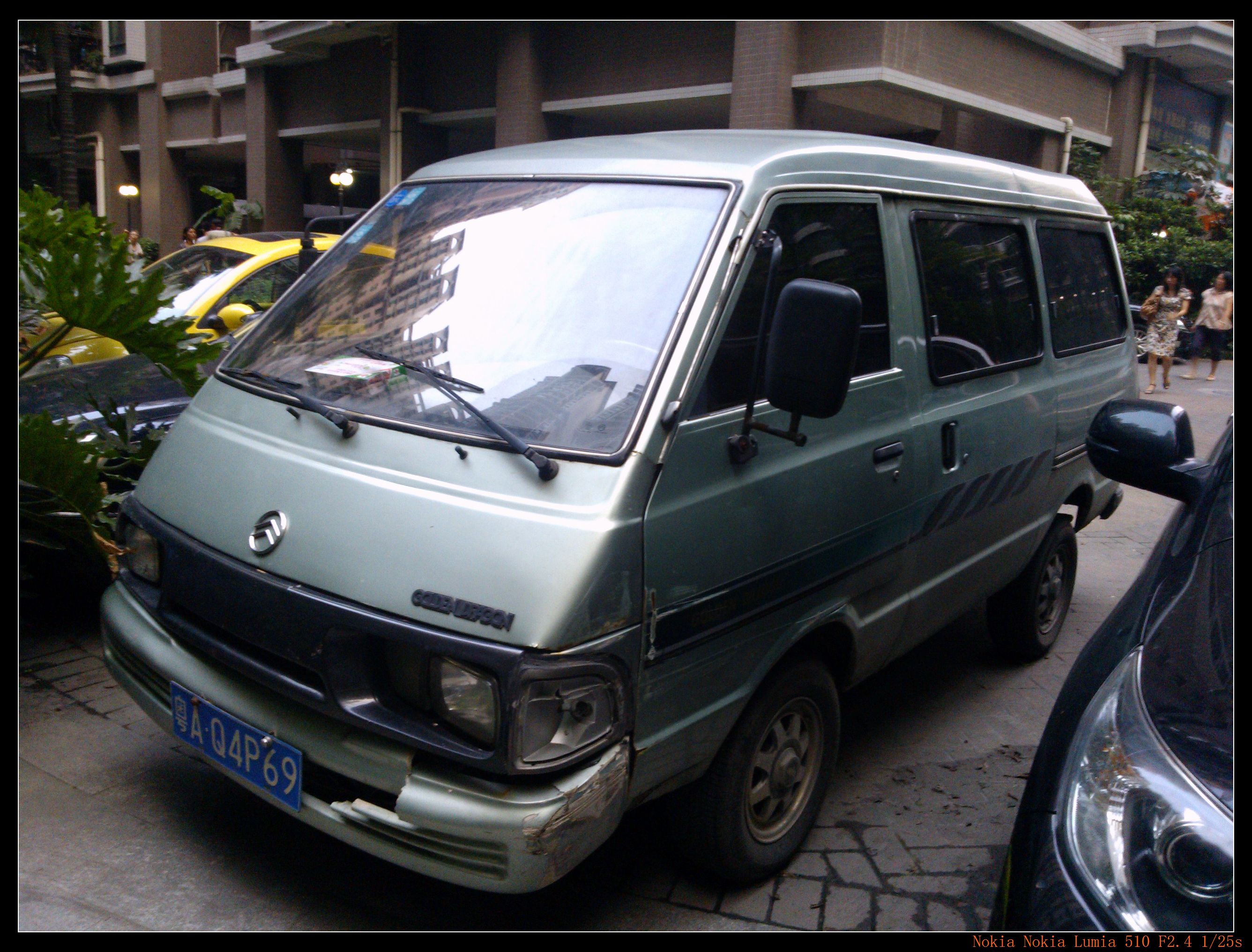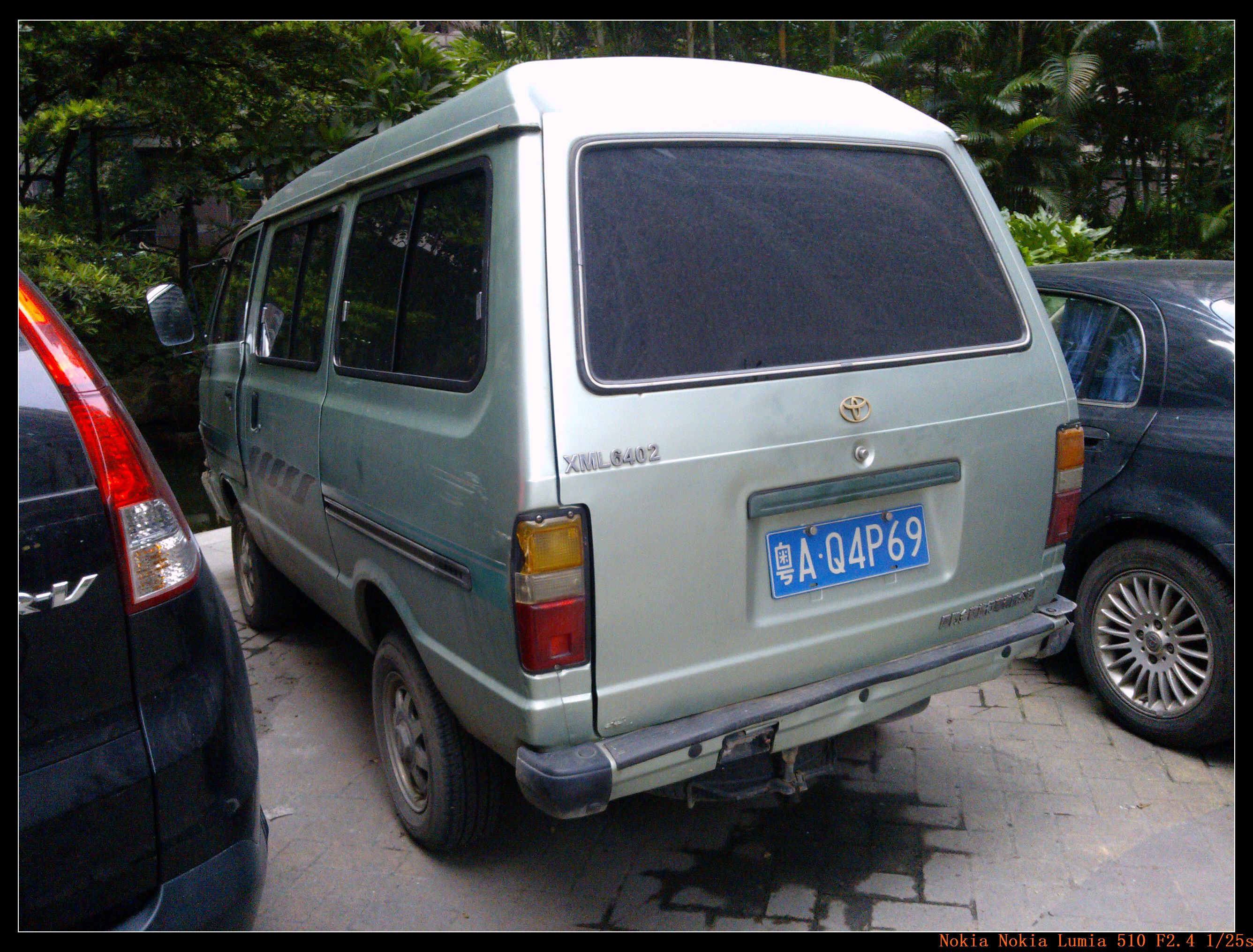 某天经过广州的一个小区角落不显眼的地方,发现了一台居然用丰田车壳的金旅第一代面包车XML6402,