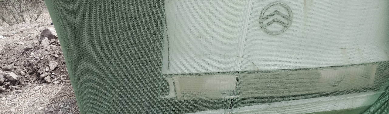 今天去五彩浅山健身,发现两个被绿布蒙着的车,我马上就去那里看了一下。