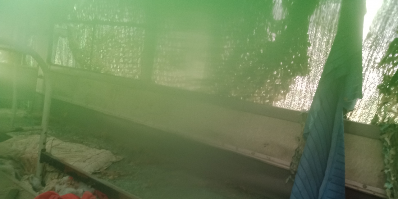 绿布蒙的太严实了,我就像一个考古学家一样撩开可以撩开的布,看到了生锈的车轮。