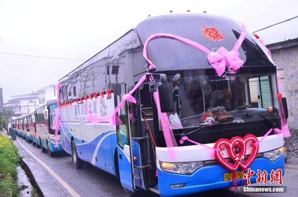 湖北小伙用8辆旅游大巴迎亲引围观