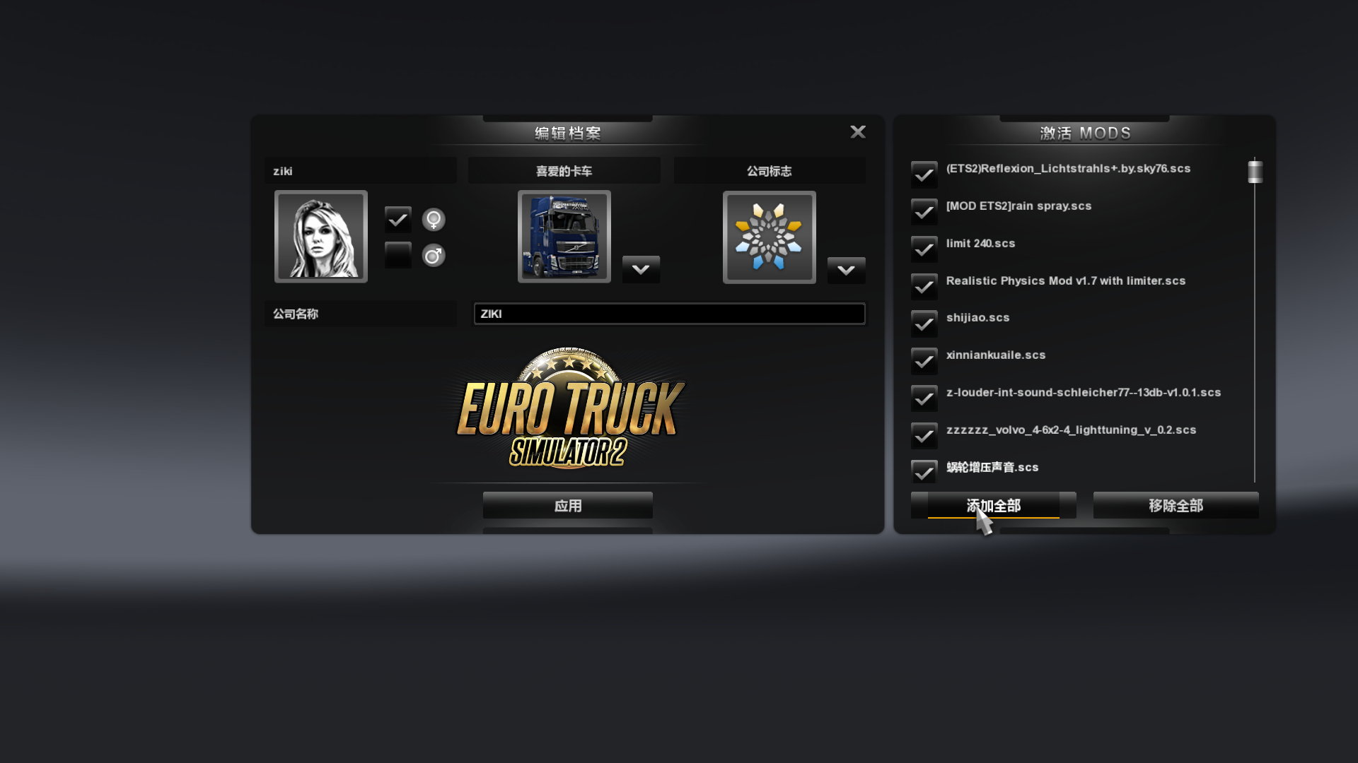 试试这样,开游戏在选存档的菜单选“编辑”,然后右边会出个MOD菜单选“添加全部”,然后点“应用”