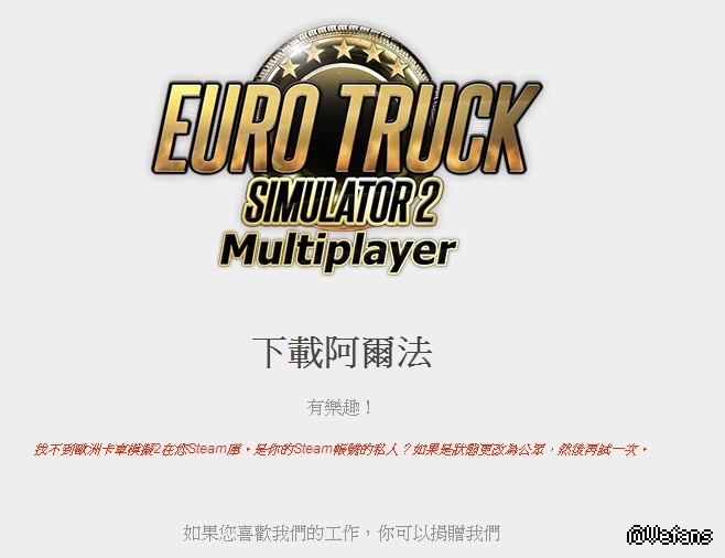 找不到歐洲卡車模擬2在您Steam庫。是你的Steam帳號的私人?如果是狀態更改為公眾,然後再試一次。