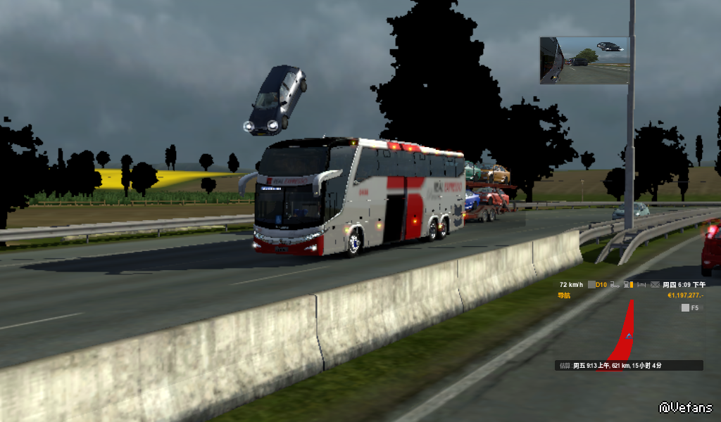 我不知道哦,因为我在DAF后面看到它停在那里,我为了不要撞到它,我割车后看到那辆AI就飞在半空中了