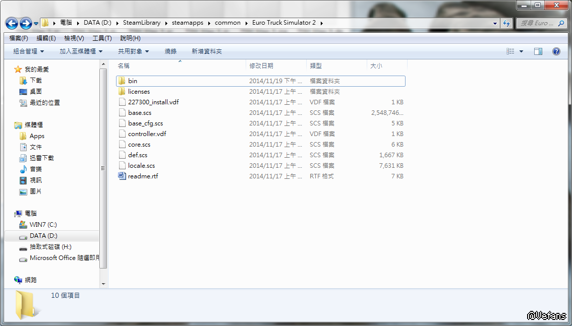 mod文件夹在My Documents/Euro Truck Simulator2文件夹内