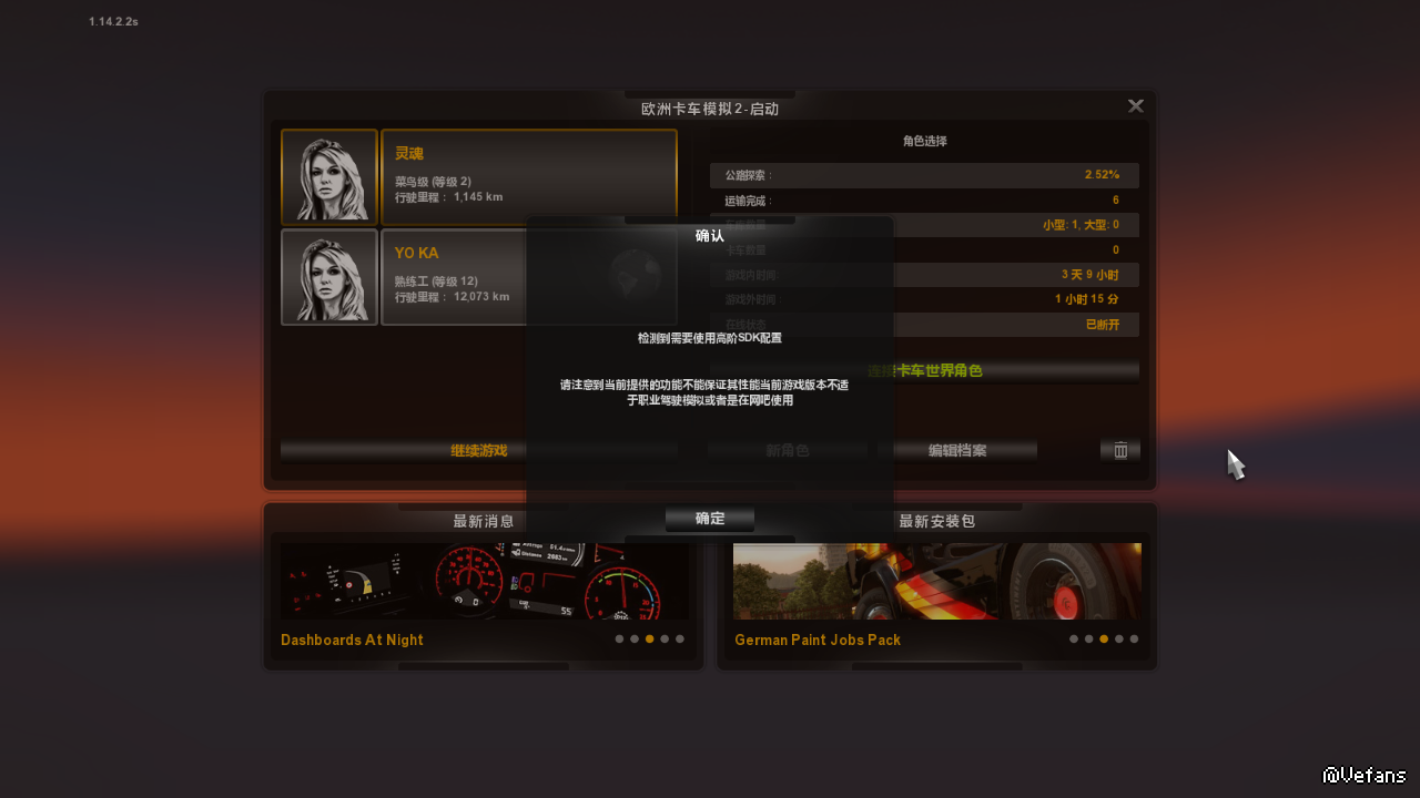 昨天晚上买的正版的加一个DLC 进了游戏之后进卡车世界就会跳出来下面这个对话框 然后我去ets2mp.com里下了插件进入游戏还是会跳那个对话框于是我下了插件旁边的SDK那个东西 但我不知道那个解压缩包里的两个文件是干什么用的 也不知道应该放在哪个文件包里的那两个文件的后缀名都是PHP格式的文件 故求有懂的大神告诉我该怎么办 谢谢了