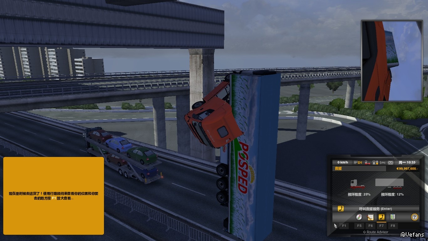 还有AI卡车简直是群SB,根本不理会你在不在,直接撞过来
