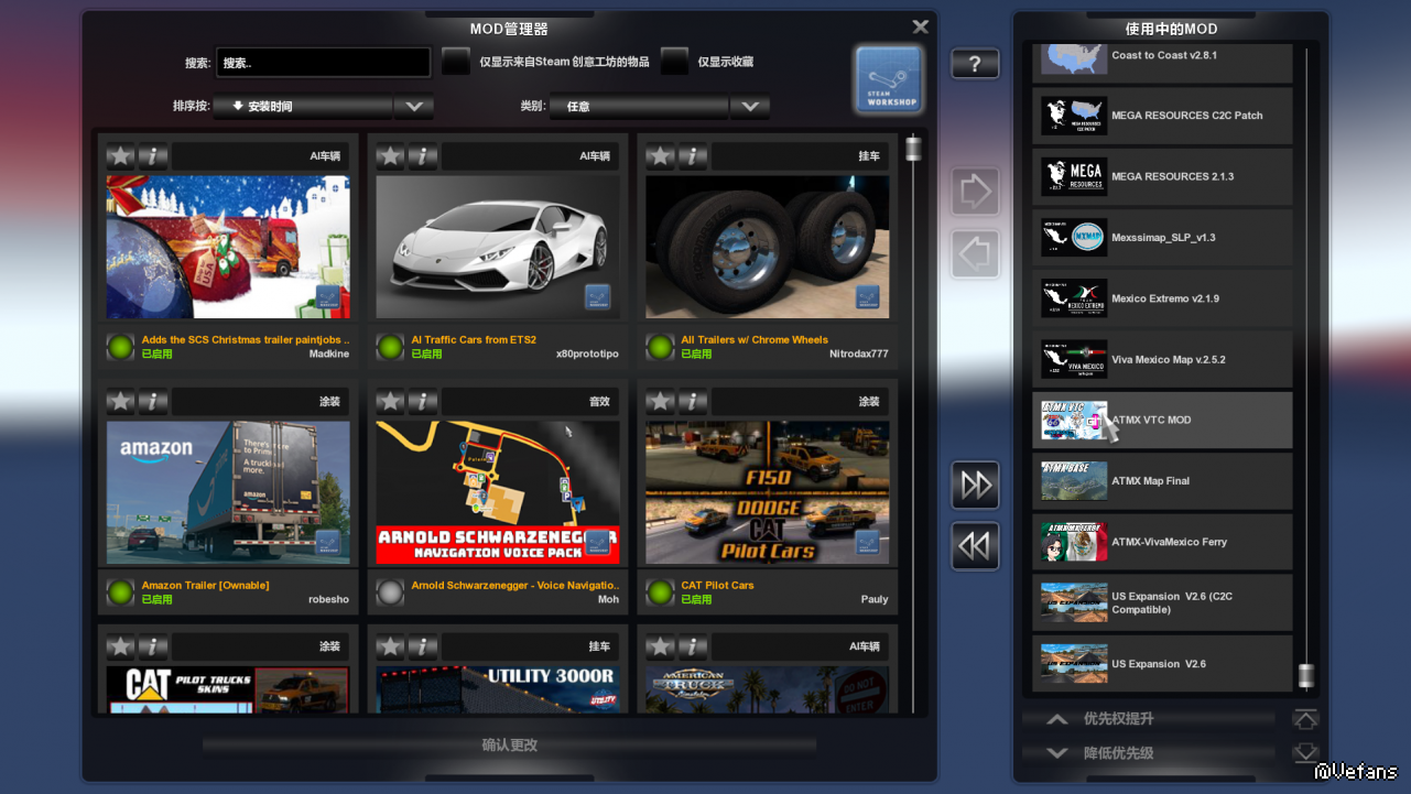 本人所有DLC都有,按照网站的最新版本下载的海岸2.81和最新的墨西哥地图MOD组合不了,一加载就崩溃,我记得以前我组合过啊,1.34版本组合过,1.35怎么不行了呢?