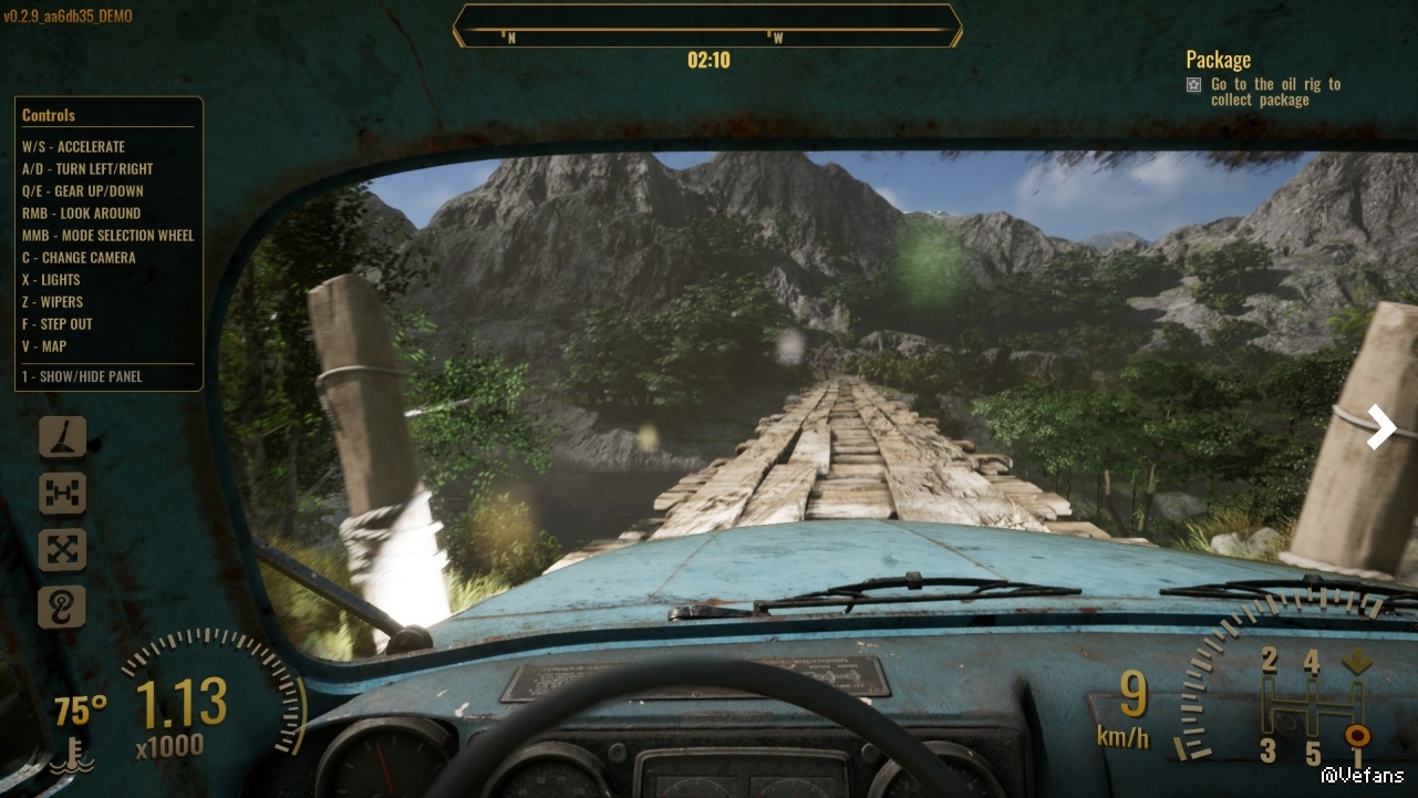 游戏主要走泥路、险路,中途可能遇到车轮故障,需要按tab键切换不同模式,找工具、拧螺丝修车。