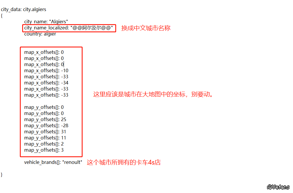 4、我们选中一个sii文件,再用记事本打开,例如,我们选中非洲地图MOD中的叫“Algiers.sii”的城市,打开后入下图。我们只要改city_name_localized: "@@阿尔及尔@@"这句描述文字中两个@@中间,替换为中文名字,其他地方都别动。注意:有些地图MOD中不是sii的文件,而是sui的文件,同样可以用记事本打开编辑的。