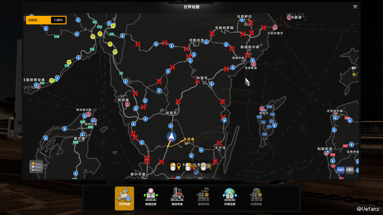 2如果第一种可能排除了,你看下,其他地区,包括benganJ做的那个瑞典群岛地图都没问题,有公路编号。只有瑞典地区有红叉叉。建议你排查跟瑞典地区有关的mod,比如,第二图,斯堪的纳维亚地区的轮渡。