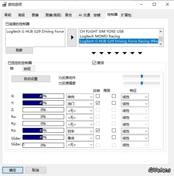 按照论坛中已有的教程设置了,再返回游戏使用罗技G29操作车辆,没有反应。想问一下各位大佬,有设置成功的吗?