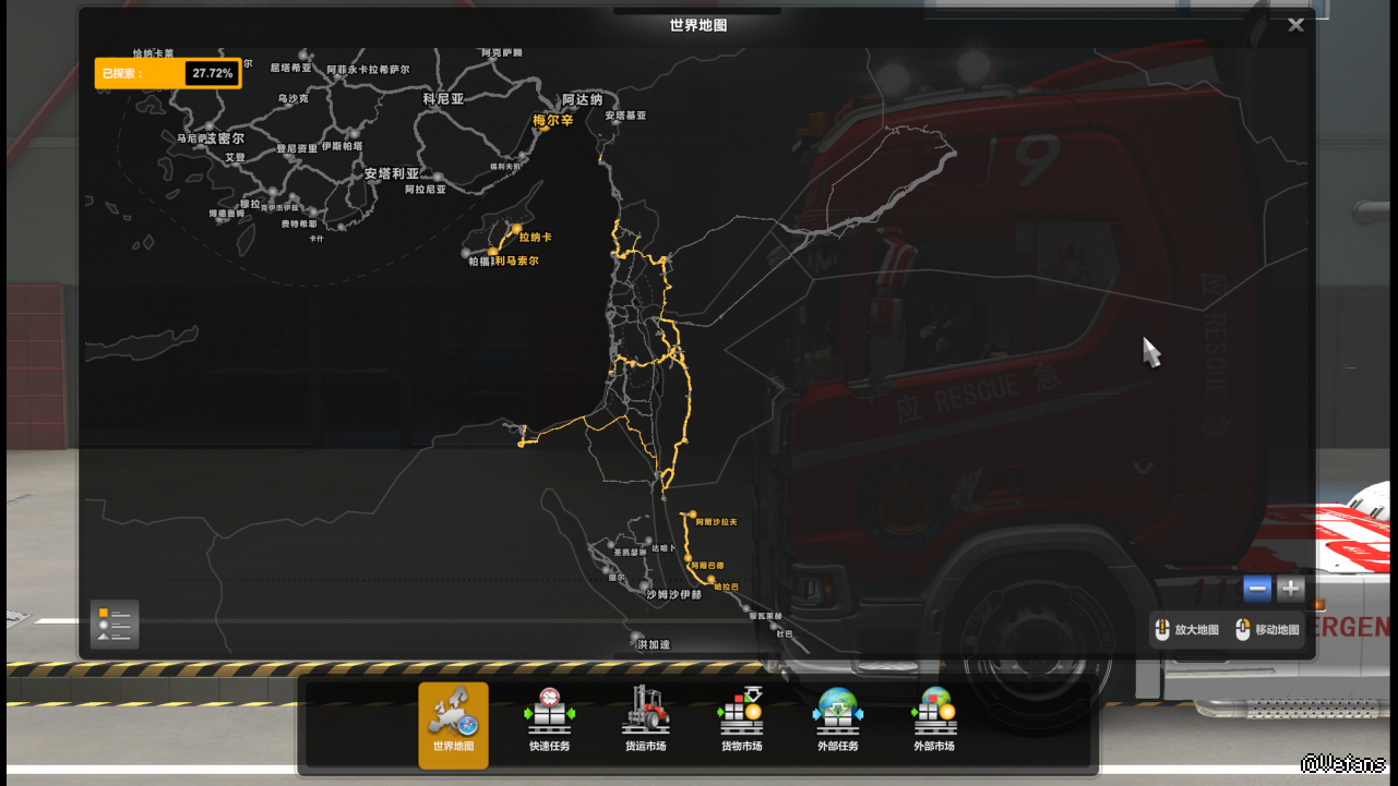 在装了promod 2.62加中东2.62以后,地图扩展是有,但是中东地区没有城市名显示。