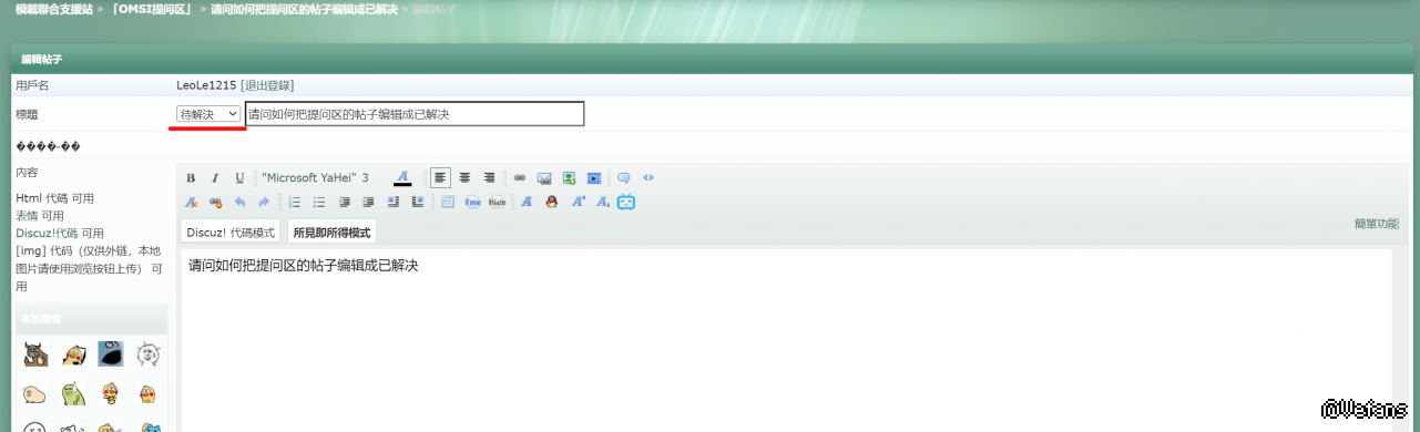 » 请问如何把提问区的帖子编辑成已解决