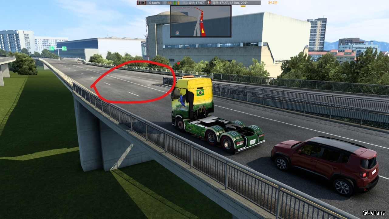 在图片上标注的地方,行车到那的时候,卡顿一两秒,然后就直接退出游戏了
