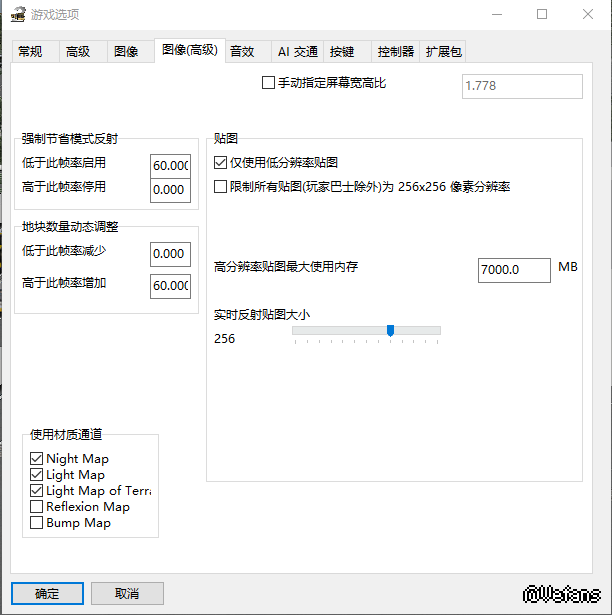 那个高分辨率贴图填太多了。。。7000mb改成0mb即可,越小越好