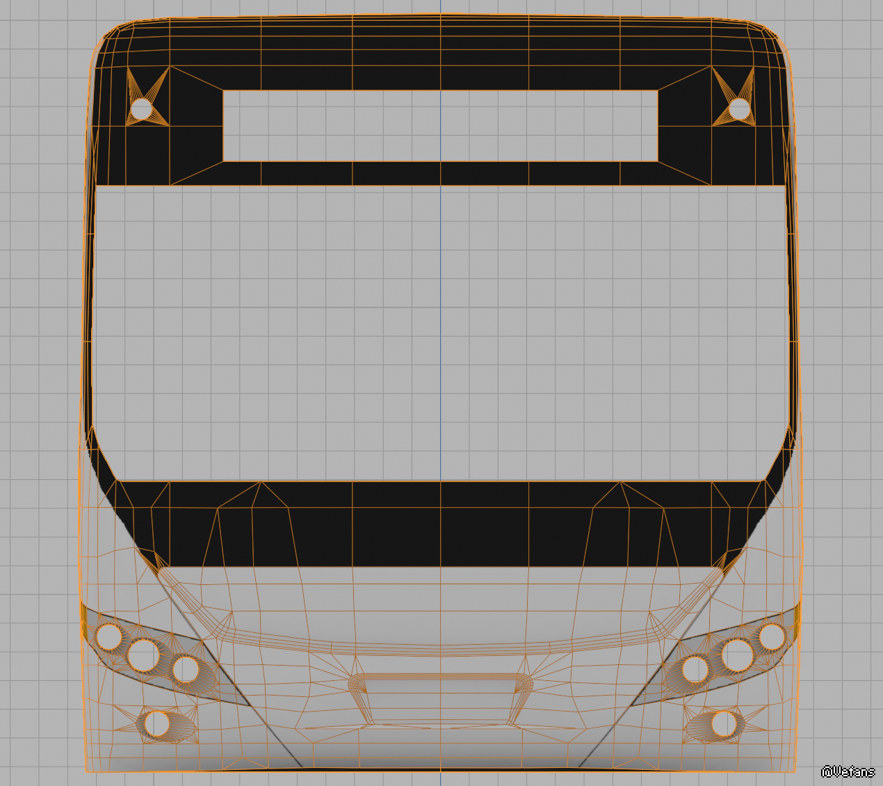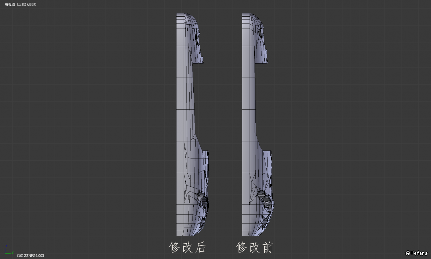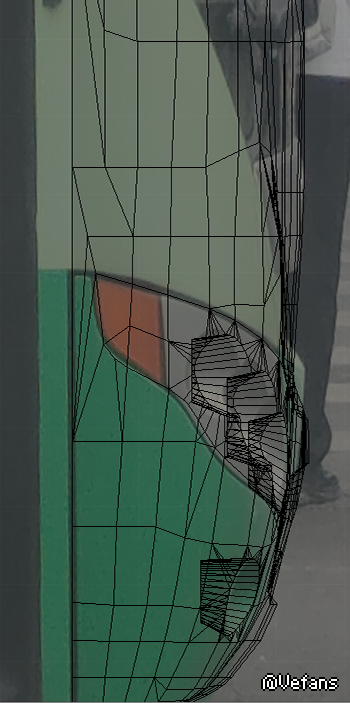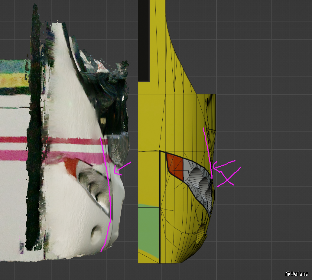 第二条相关你方贴出了参考用素材,麻烦截图可以再小一点?为何截图不是全貌?正视图车牌框都看不到?我不认为会有人拿一堆杂草遮挡的素材照片当参考,而且这不是很明显实车参考和建模大部分都对不上你的参考图吗?实际上在车两侧角度很大的地方确实会对不上,但是正面大部分区域应该都能对上。比如我先前提到过的虽然就漏了一点点的车牌框下部三角区,侧面就更不用说了,我可以理解带角度的模型用正交视图看会有误差,那么从侧面看橘黄色眼角应该是正对的吧?为什么橙色灰色分界线能差这么多?故意挪的?理由是?