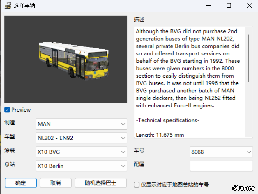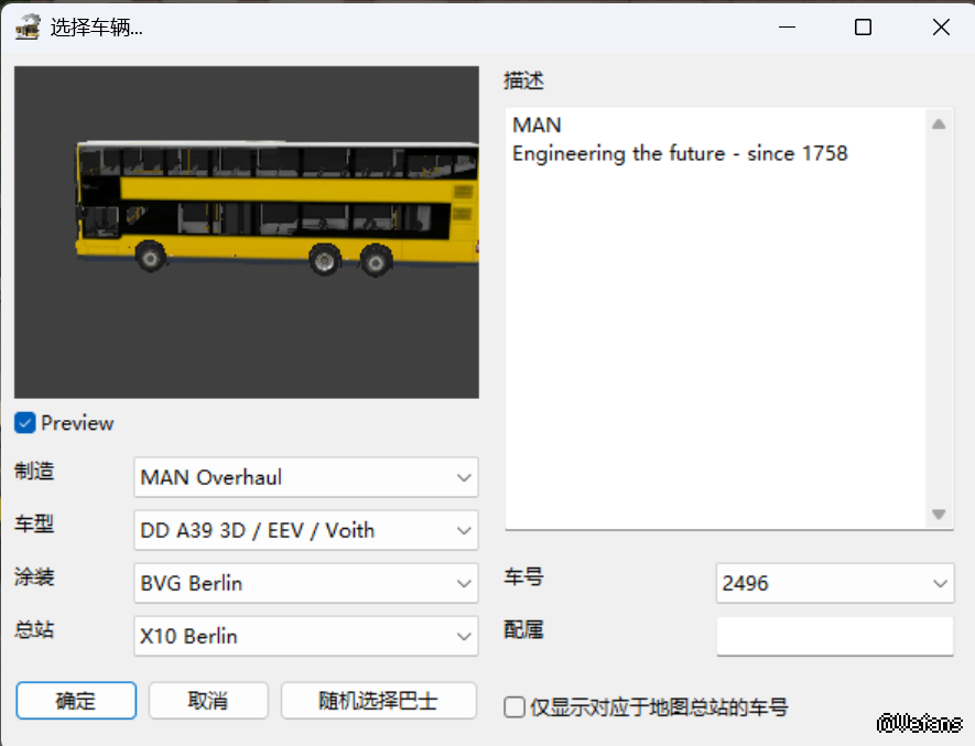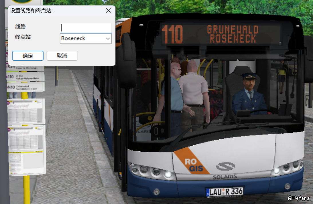 在游戏自带的MAN EN92上输入线路号11000和方向号01可以打上电显和使用报站