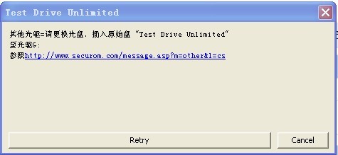 RT:TDU光盘版 安装完了,但是玩不鸟。每次打开之后就会出现下边这个对话框,烦请高手解答,谢谢!