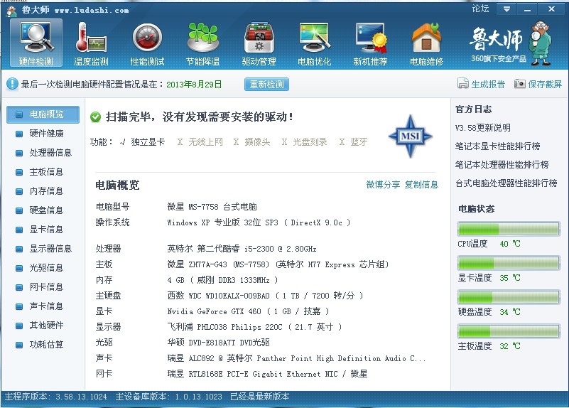 先来张电脑硬件检测