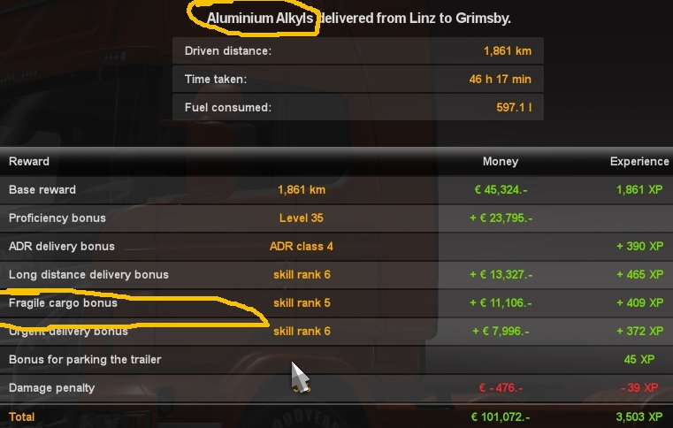 在安全运抵以后 会得到 易碎品加成 也就是22%的经验加成